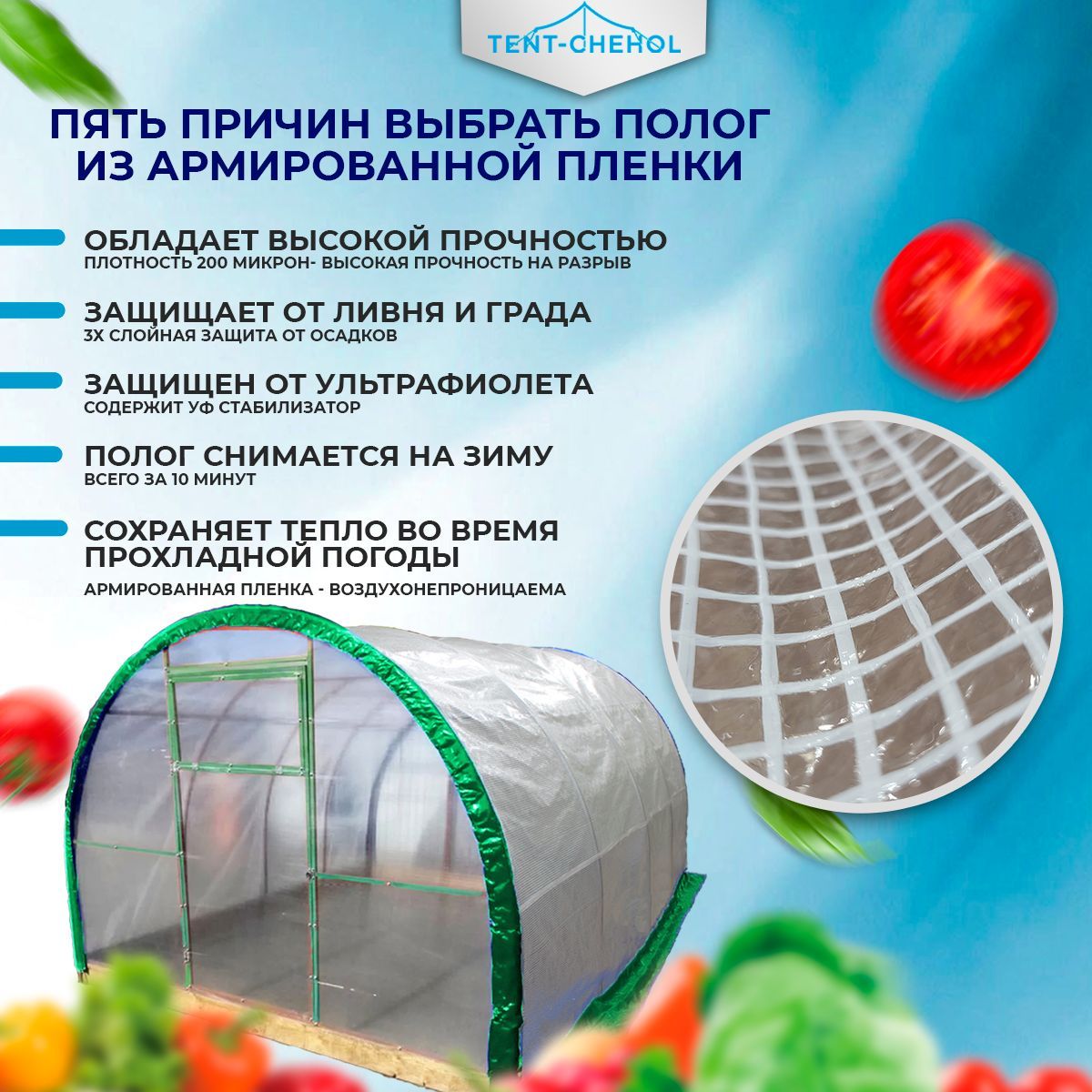 Краткое описание «Полог для теплицы из армированной пленки 3х3х2,1м»