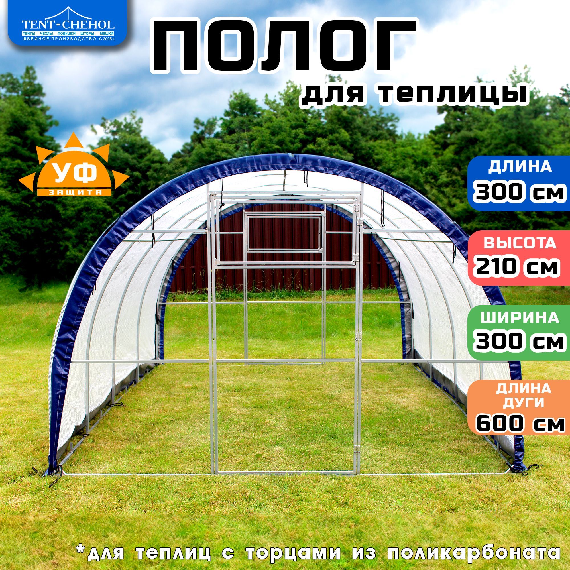 · Полог подходит для арочной (полукруглой) теплицы размерами 3х3х2.1 метра, при этом длина дуги должна быть 6 метров.