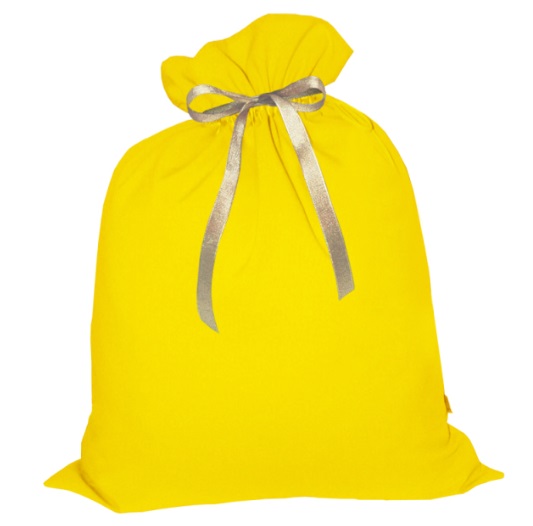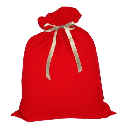В такой огромный мешок поместится даже самый объемный подарок. Мешок сшит из хлопковой или синтетических тканей.