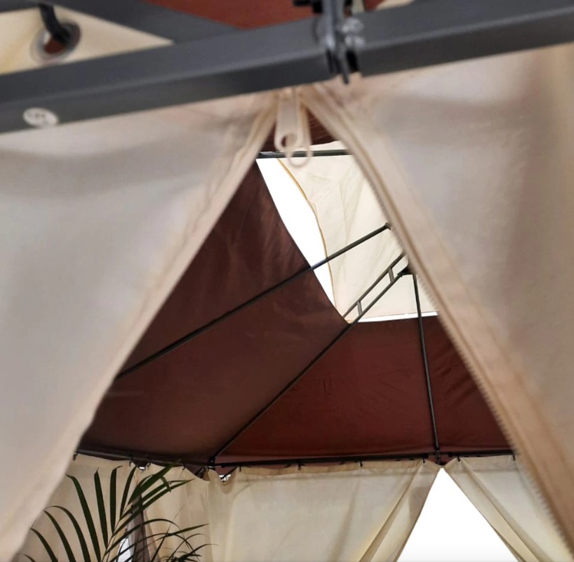 Материал тента крыши - Оксфорд полиэстер с полиамидным покрытием, которое устойчиво к намоканию и загрязнениям.