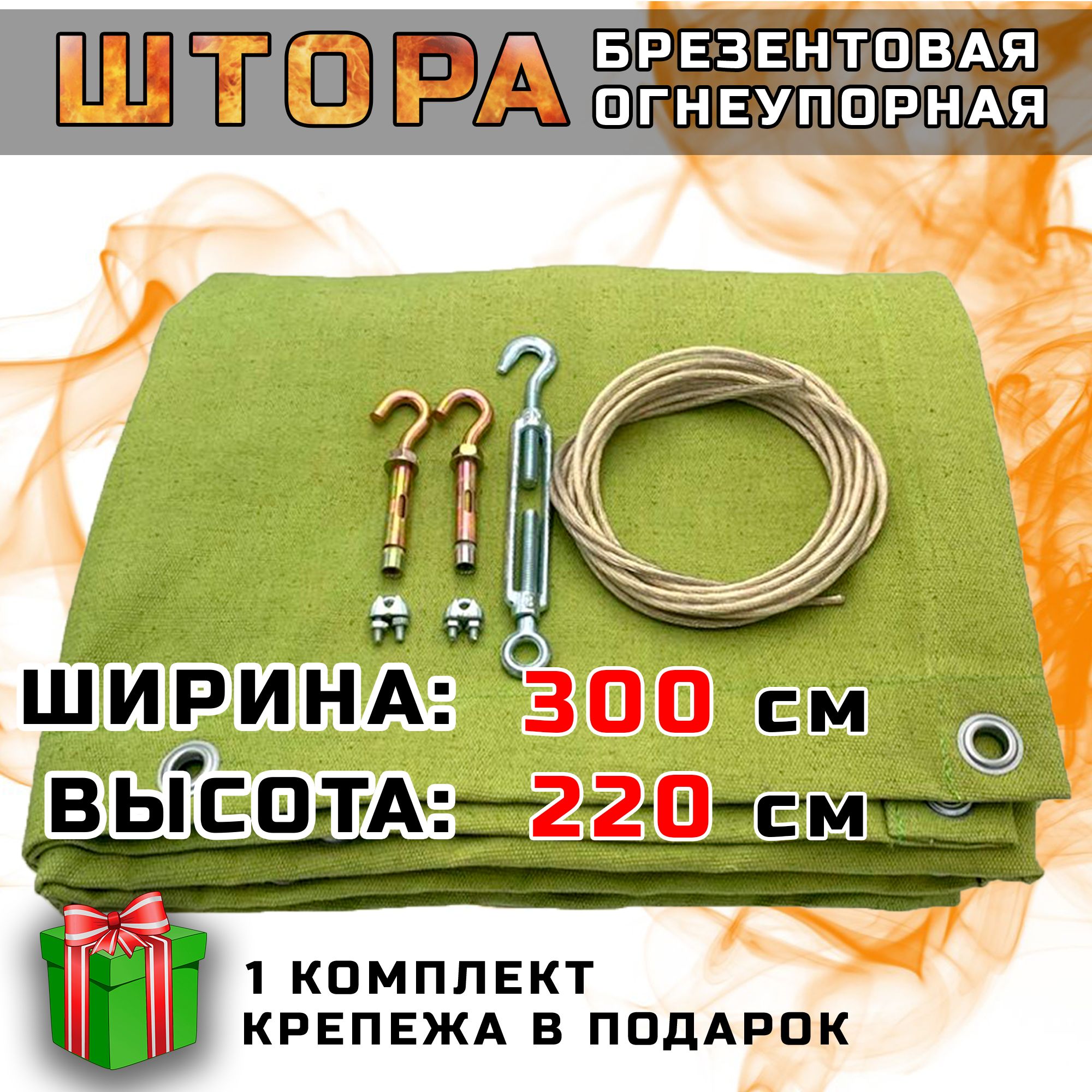 Краткое описание «Брезентовая штора огнеупорная для гаража усиленная, высота 220 см, ширина 300 см»