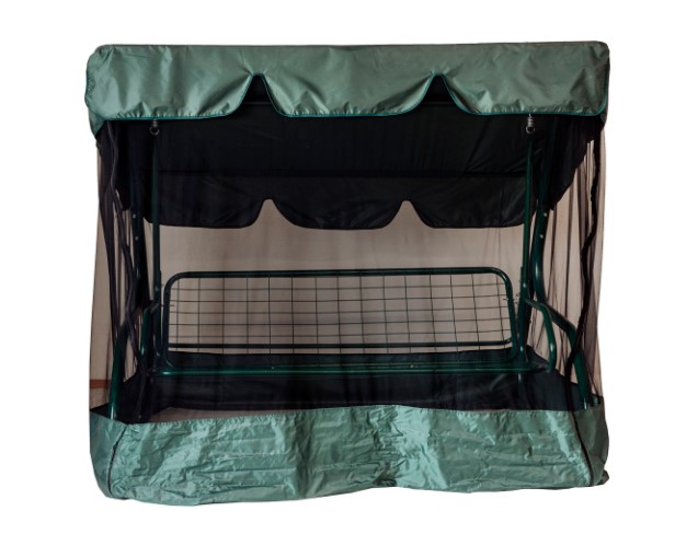Это чехол, предназначенный для садовых качелей, у этого чехла есть москитная сетка, а сам он имеет зелёный цвет. Ширина изделия составляет 145 см, высота 170 см, длина 214 см. Предназначен данный чехол для того, чтобы защитить садовые качели от разнообразных внешних воздействий. Изготовлен чехол из полиэстера, он не пропускает через себя осадки, палящее солнце и насекомых. Для того, чтобы приобрести данное изделие, просто добавьте позиции в корзину и оформите заказ.